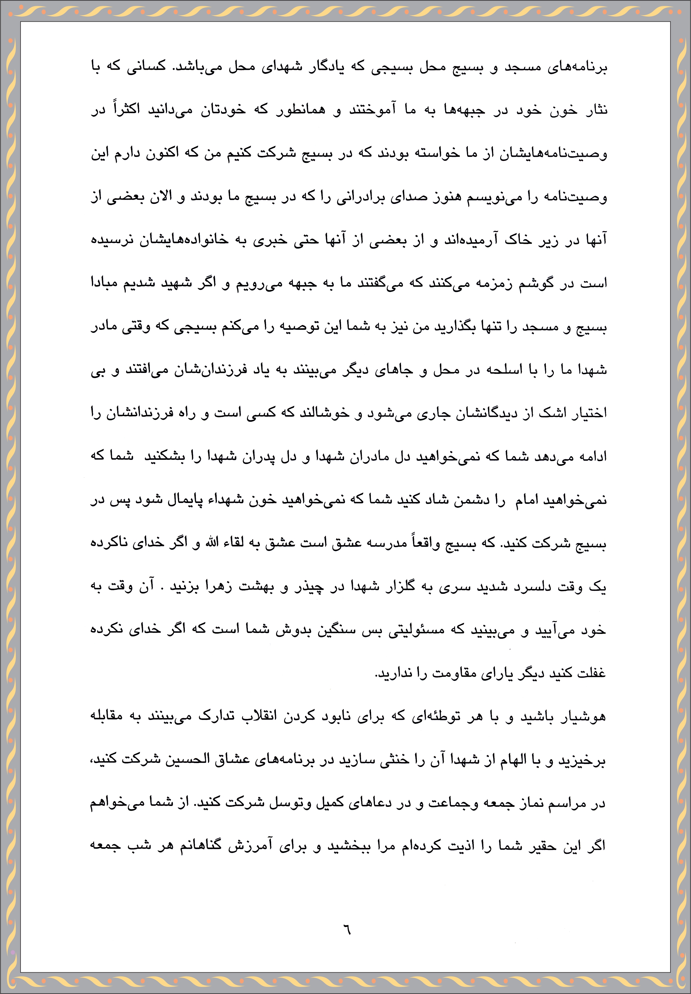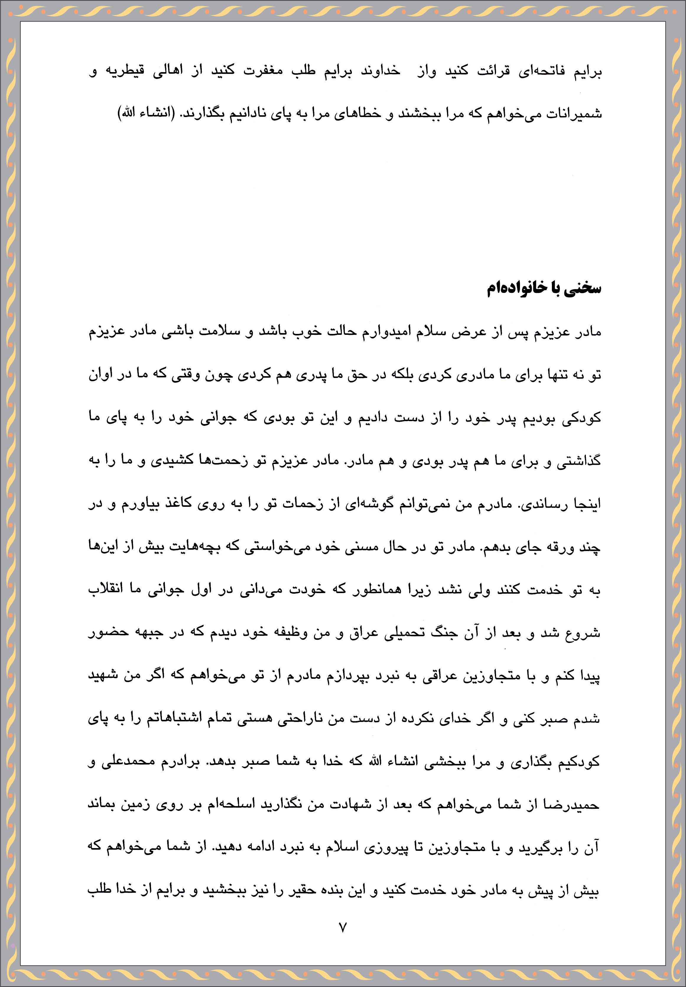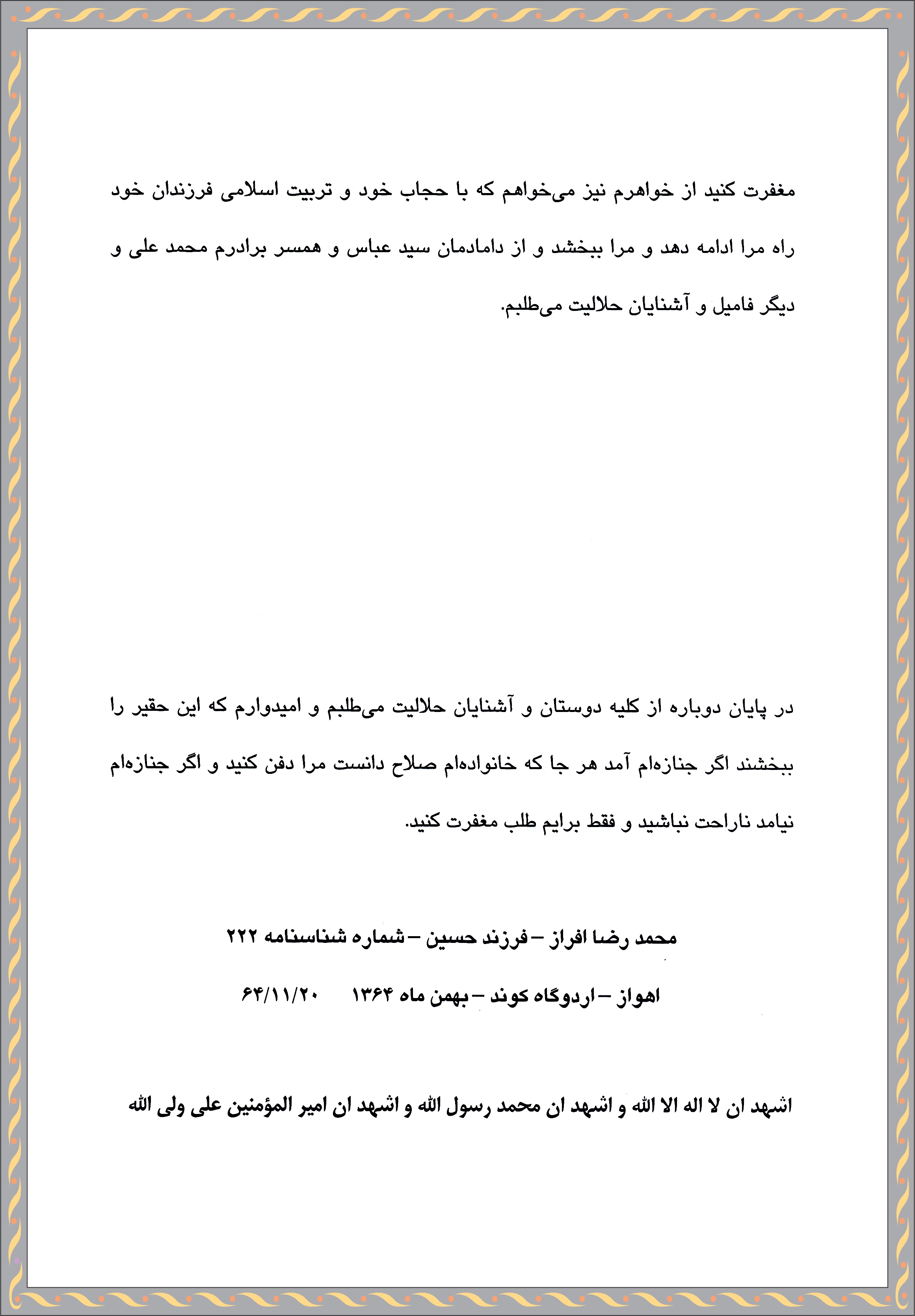 متن وصیت نامه شهید افراز